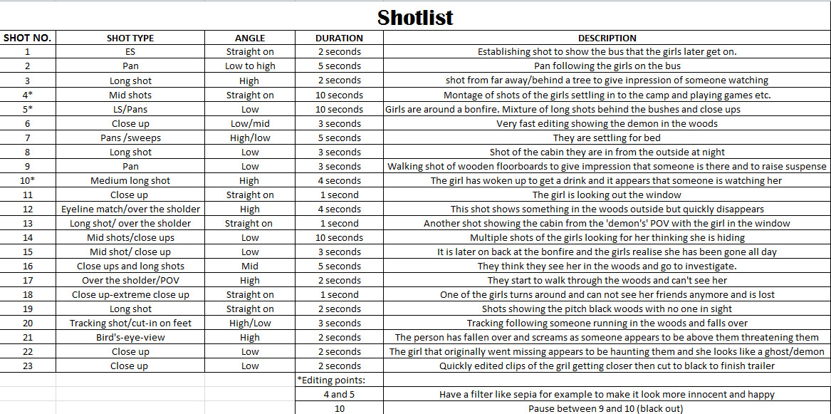 Shot List Example Film : You can't edit the original document, make a.